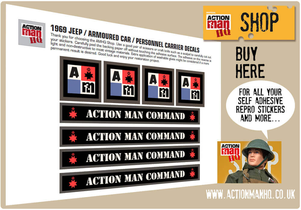 Action Man HQ Shop sells reproduction stickers for many Action Man figures and accessories: