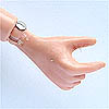 | Reproduction right hand - Note thicker nylon wrist pivot and darker beige paint on rivet and more pronounced wrinkles |