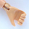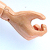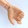 Reproduction gripping right hand - Note large rivet, and lack of detail in palm and wider nylon wrist pivot |