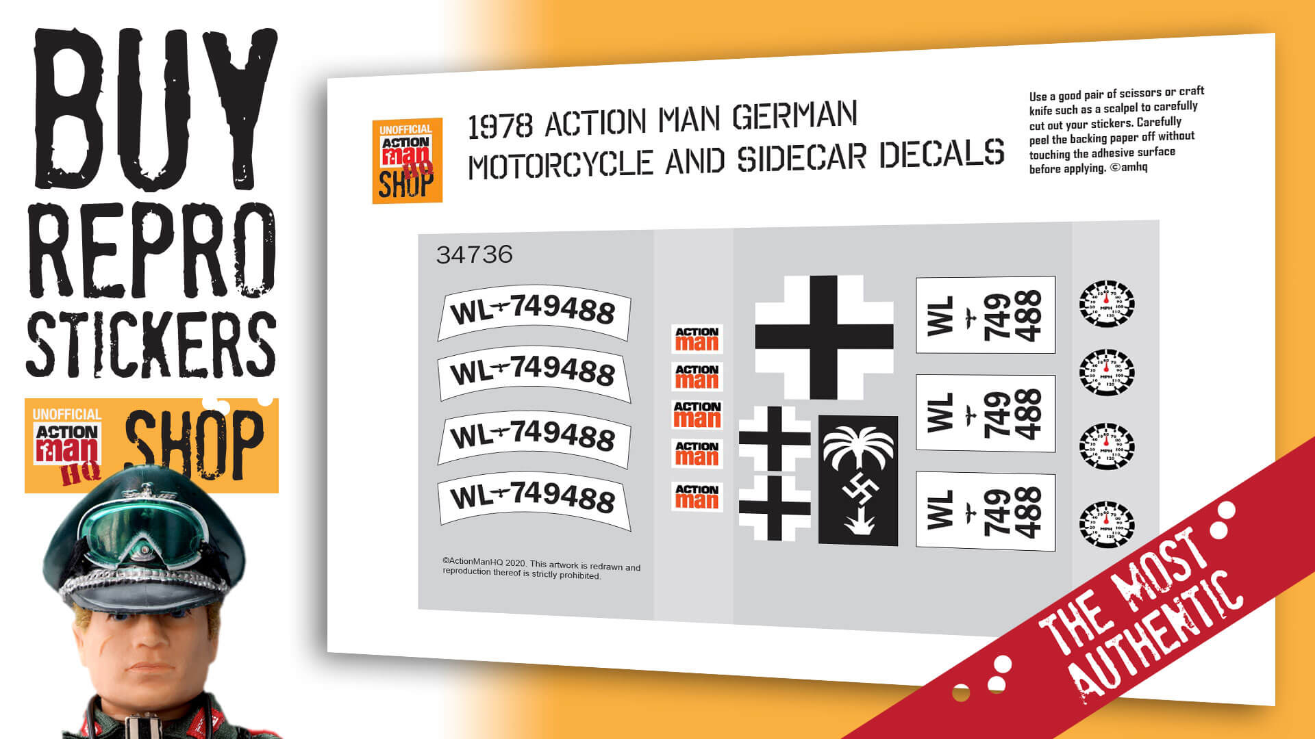 Action Man reproduction Motorcycle & Sidecar stickers: