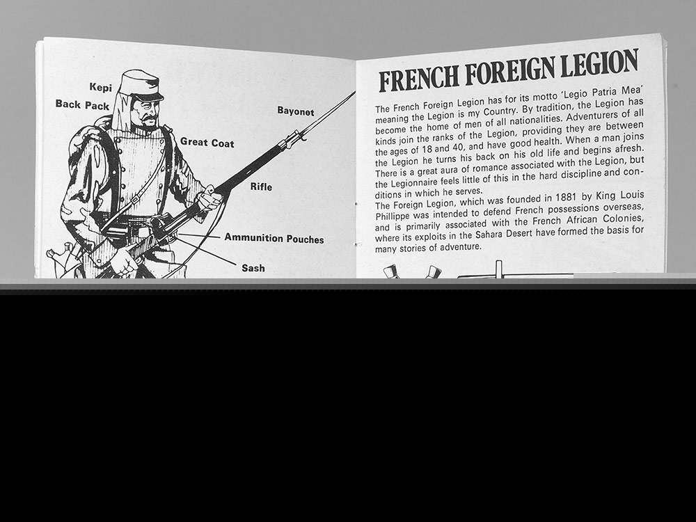 ACTION MAN FRENCH FOREIGN LEGION EQUIPMENT: Backpack, rifle, bayonet, sheath, canteen and belt, belt with pouches, Equipment Manual, Intelligence Manual.