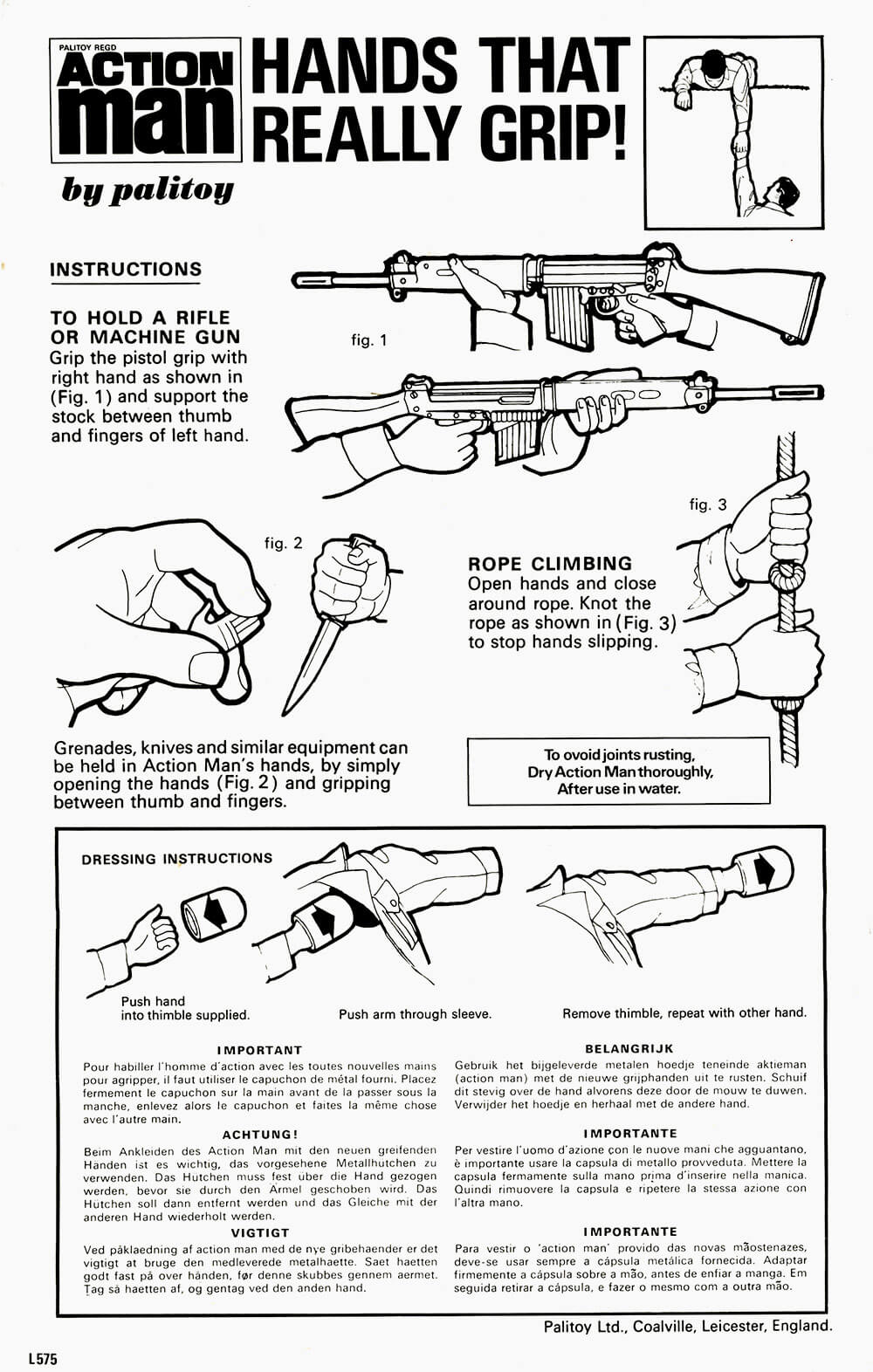 The 1977 Palitoy Equipment Manual heralded the line thus: "New Wild West Adventure with Action Man. Indians, scouts, cavalrymen - they are all part of the new Wild West range. All just like the real thing". This was the only figure to wear a wig. The outfit was sold either complete with figure in a box or separately on an Locker Box outfit which included a belt and a rifle in addition. Other Figures in the Wild West Range were the 7th Cavalry outfit, Cowboy boxed figure, Scout, Indian Chief outfit, and a Horse (labeled Cavalry Charger or Indian Pony)