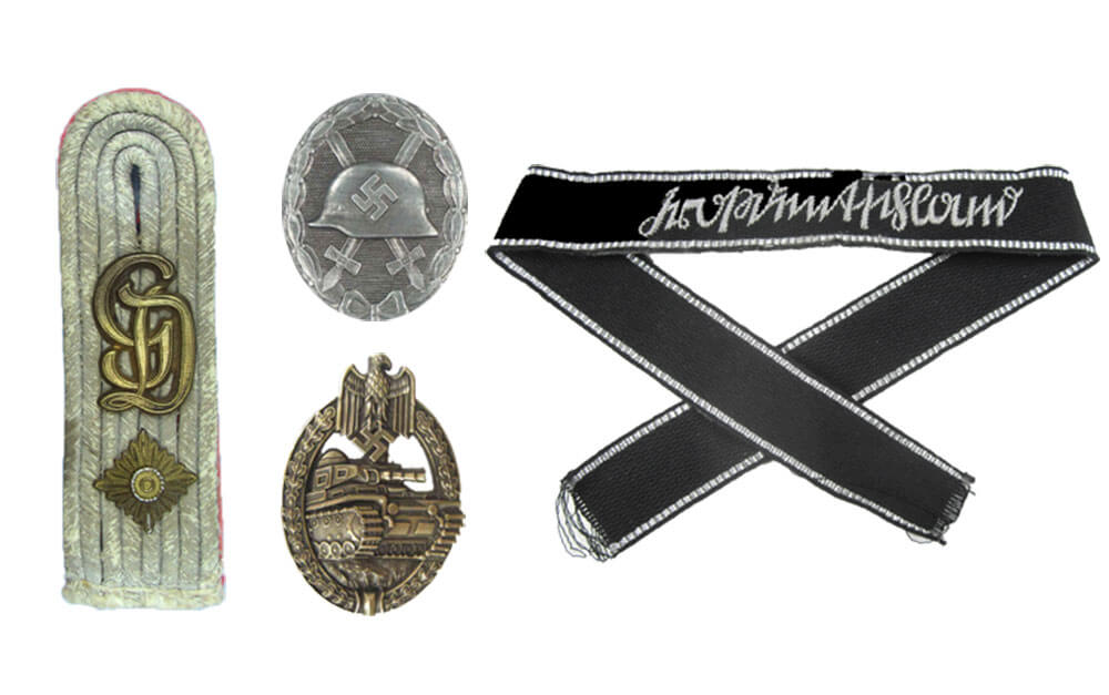 Some actual WWII Panzer insignia of the type of which the set was based on.