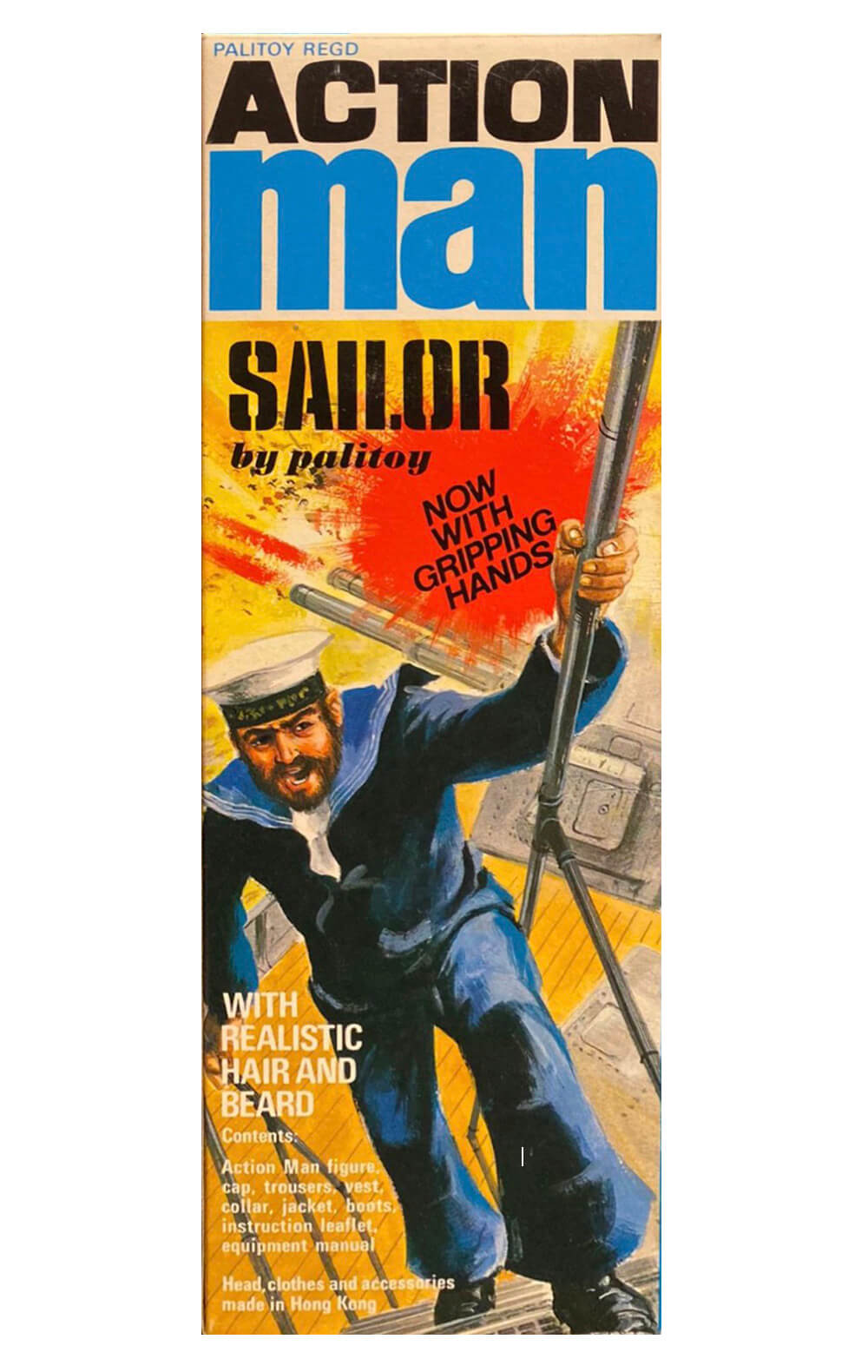 The basic Action Man Action Sailor figure from 1966, was replaced by a flock haired Action Man figure, with a more British flavour in 1971 and renamed simply "Sailor" and wearing a 'Square Rig' uniform for a Royal Navy junior rating. This all new Action Man Sailor was flocked with a full beard (as was the new Adventurer a year earlier). It could be accessorised further by equipment card sets. In 1973 he received the gripping hands upgrade as with the rest of the range. He finally gained Eagle Eyes in 1977.
